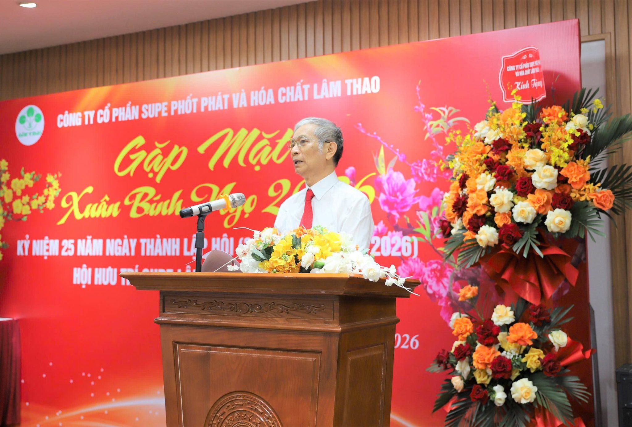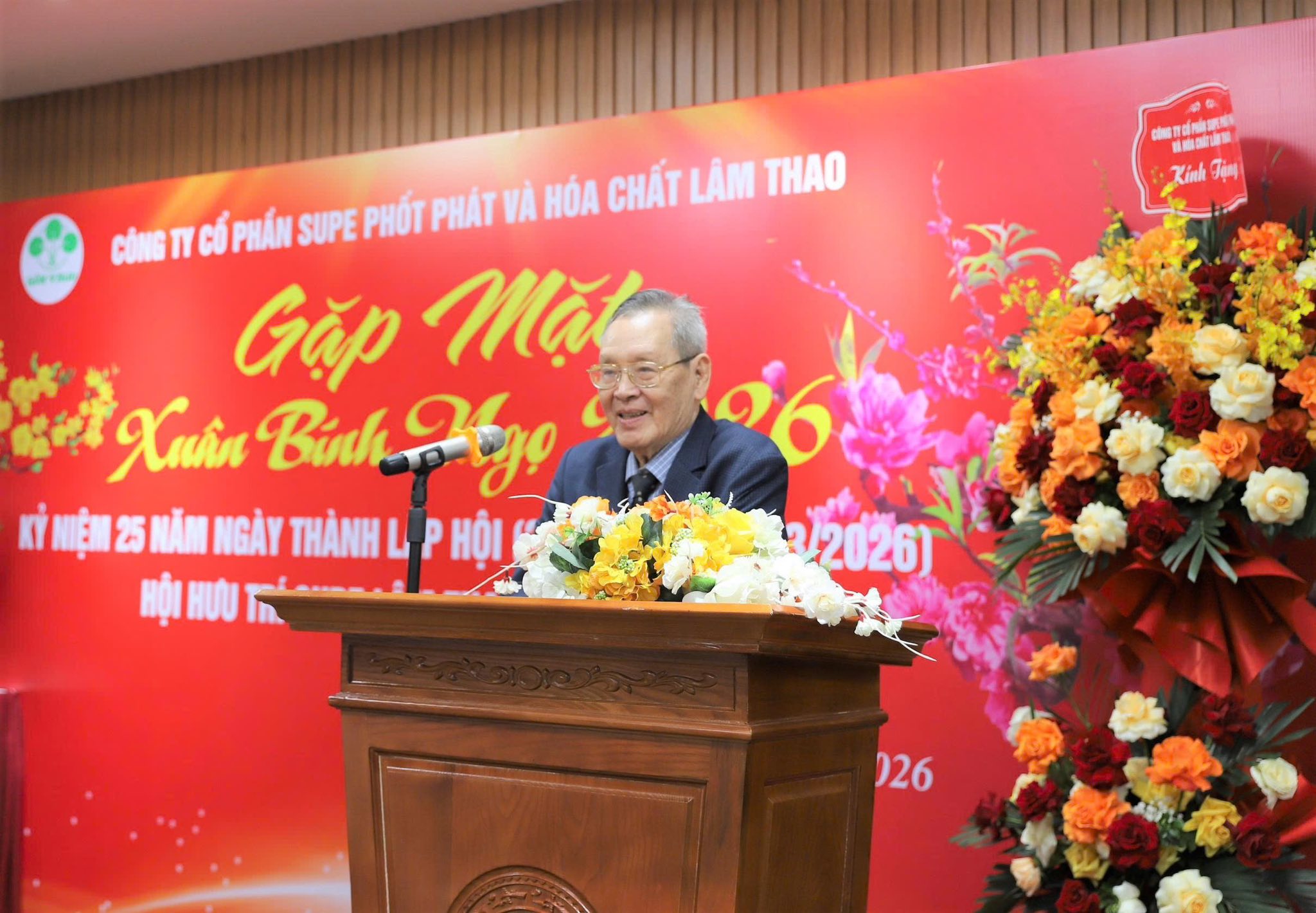 Ngày 29 tháng 03 năm 2026, tại Hà Nội, Công ty CP Supe Phốt phát và Hóa chất Lâm Thao phối hợp với Hội hưu trí Supe tại Hà Nội tổ chức chương trình gặp mặt đầu Xuân Bính Ngọ, đồng thời kỷ niệm 25 năm thành lập Hội hưu trí Supe tại Hà Nội (31/3/2001-31/3/2026).