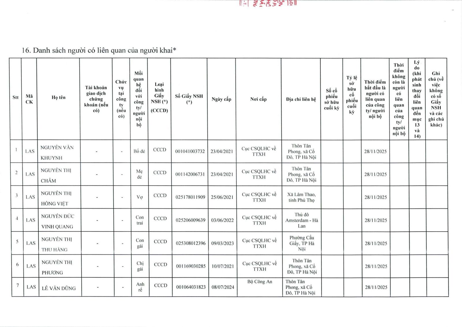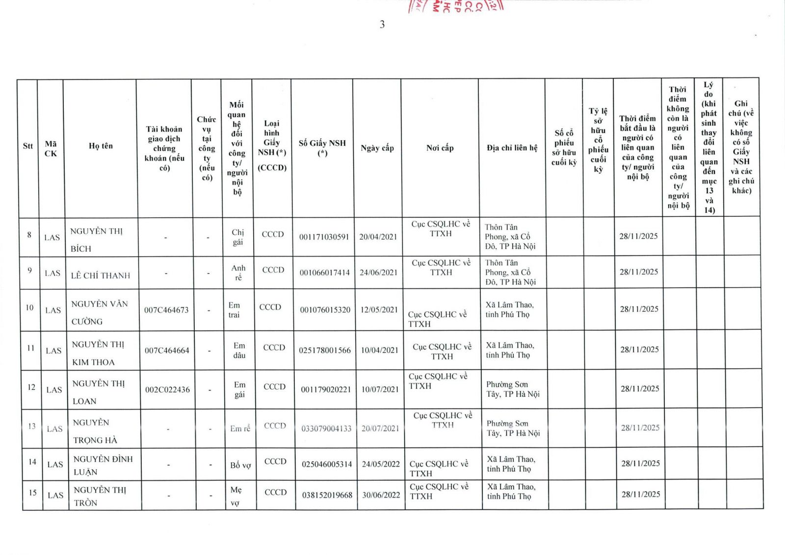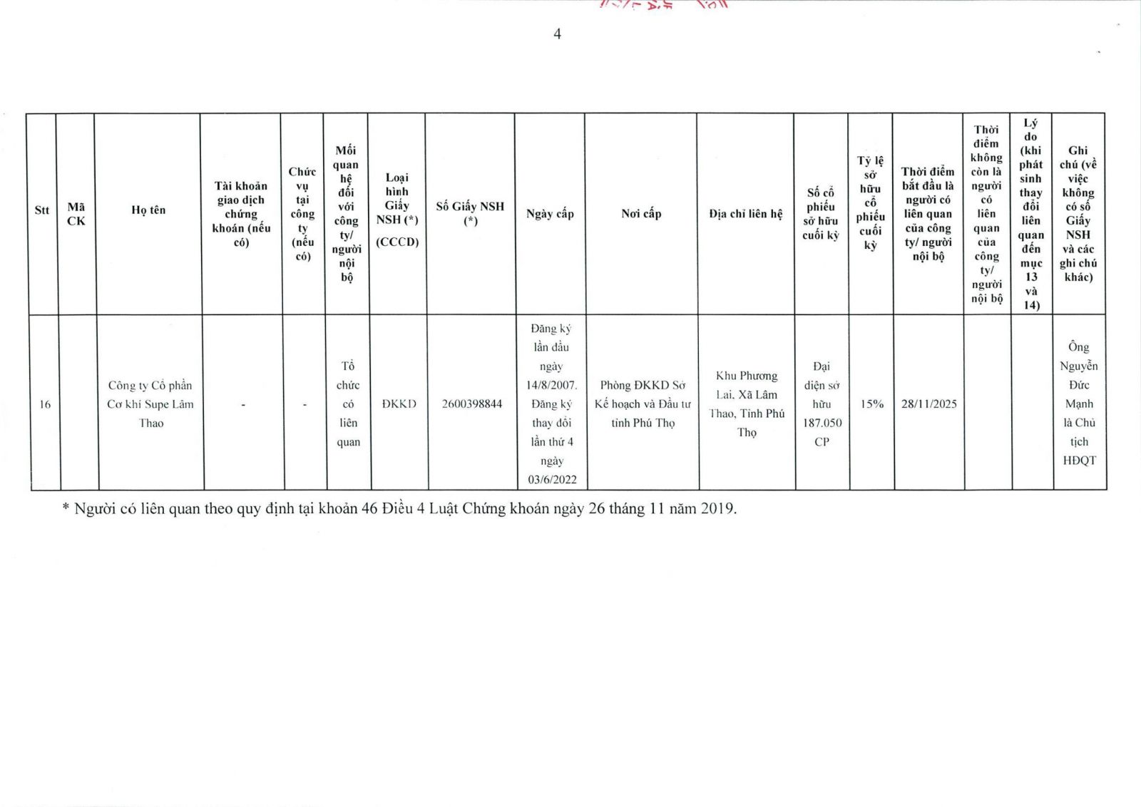 • Thông tin cổ đông