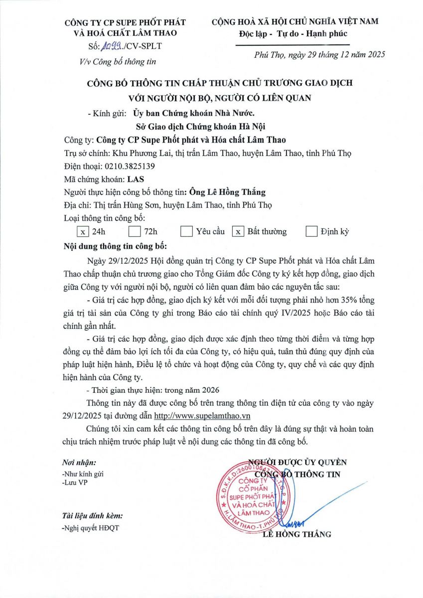 Công bố thông tin chấp thuận chủ trương giao dịch với người nội bộ, có liên quan