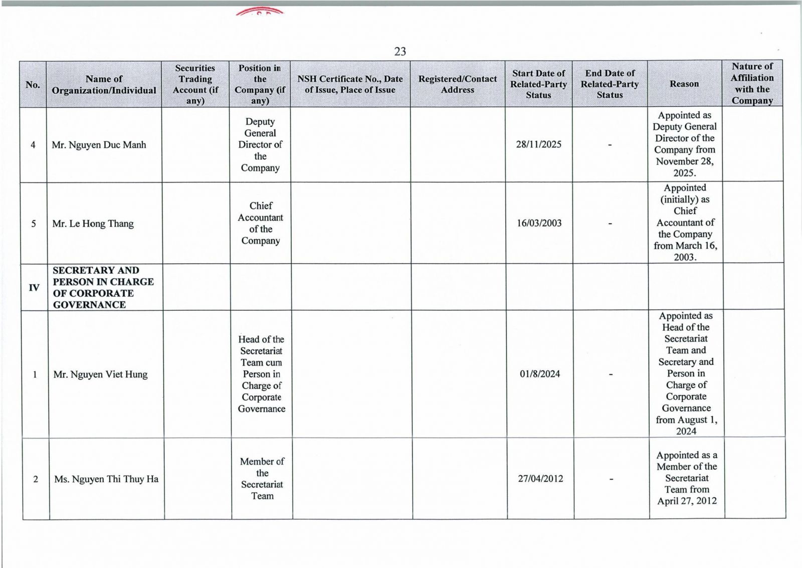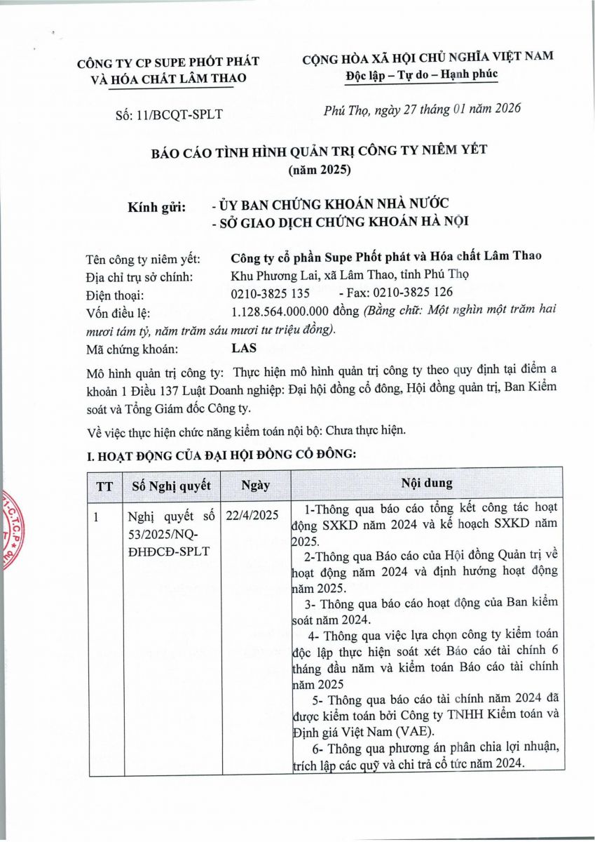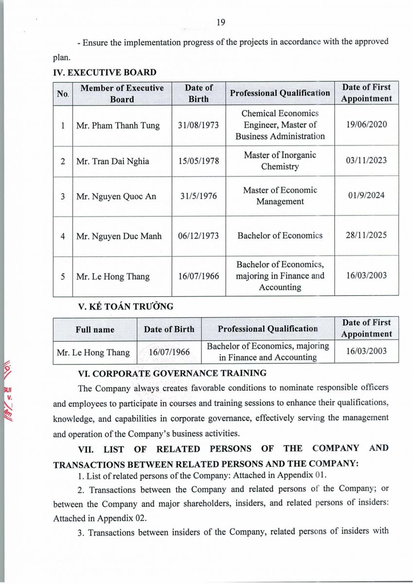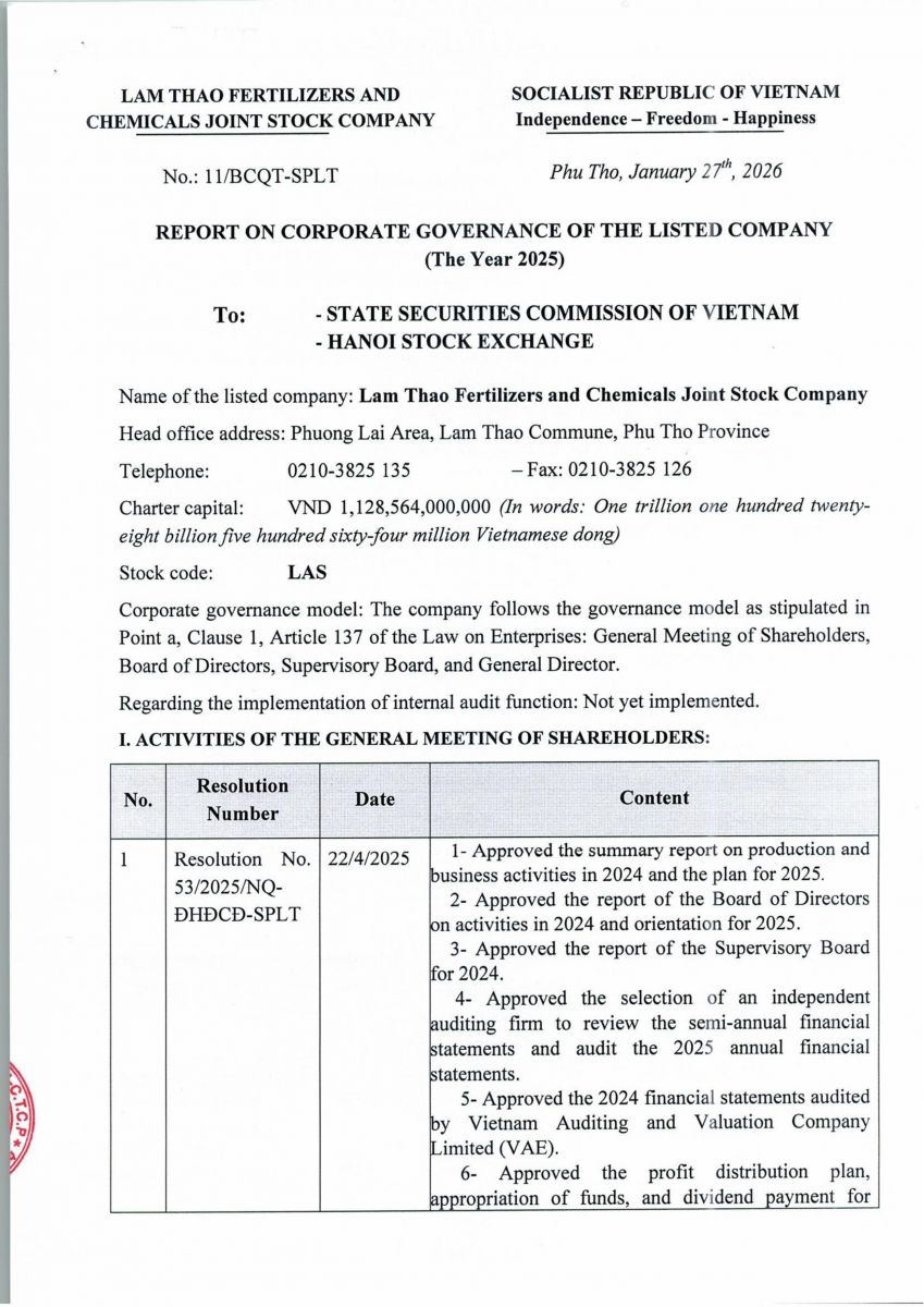 Trang chủ > Báo cáo tình hình quản trị năm 2025 - Report on Corporate Governance The Year 2025