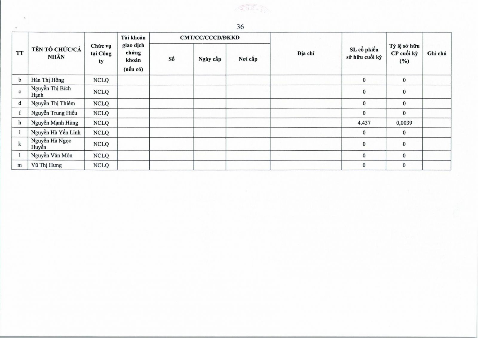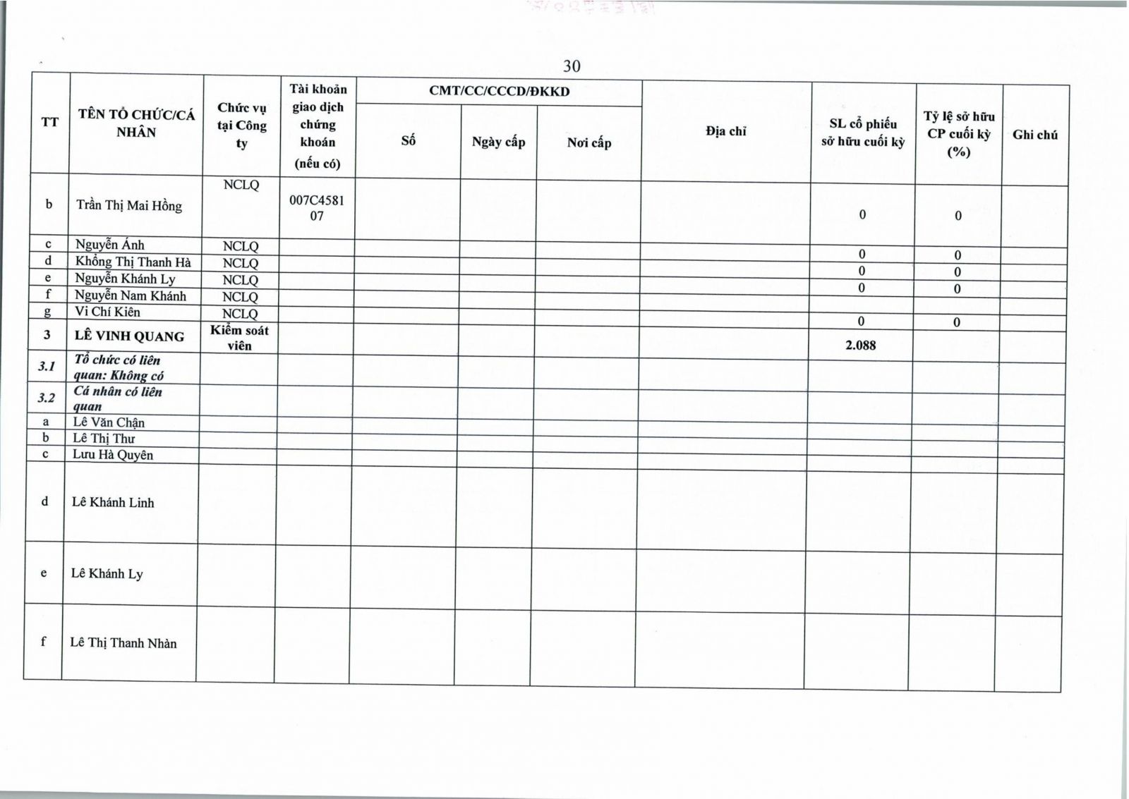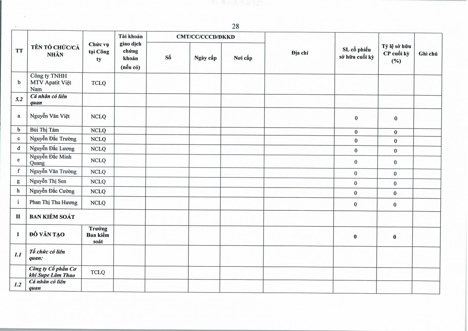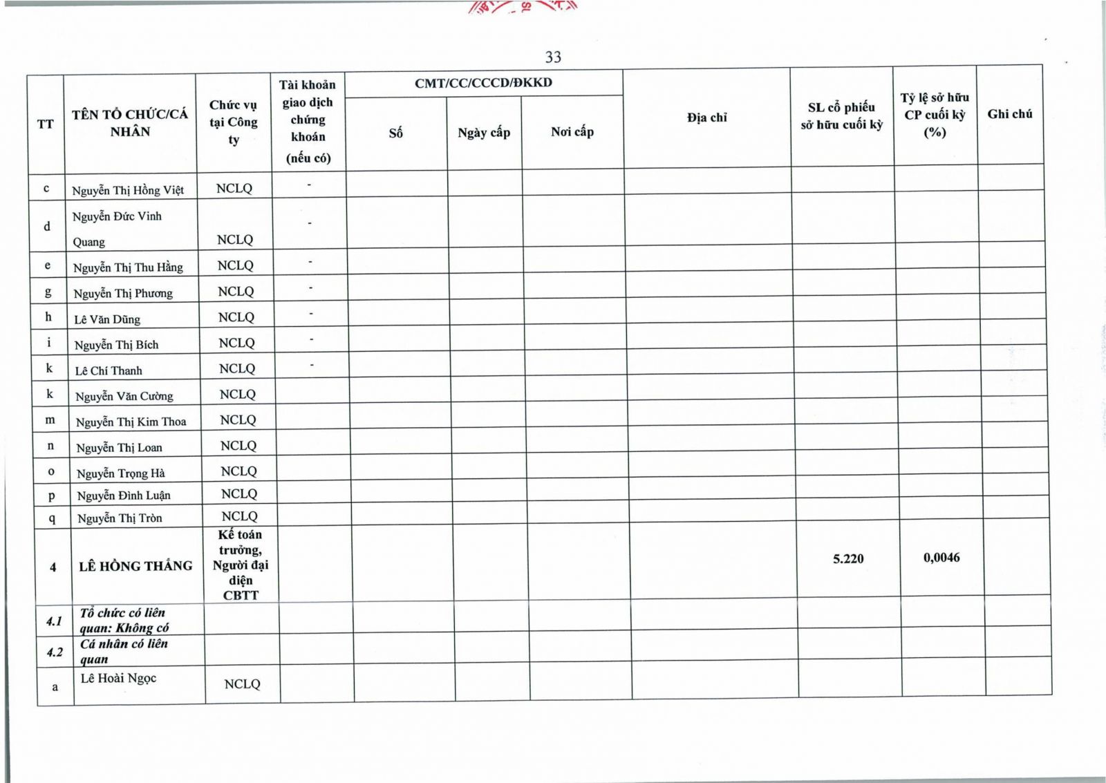 • Thông tin cổ đông
