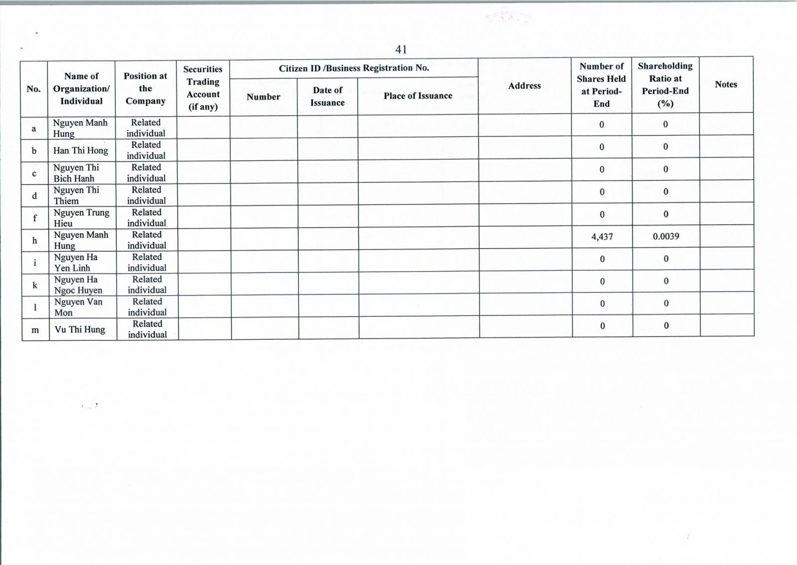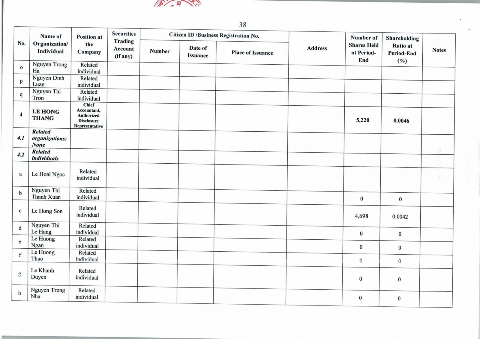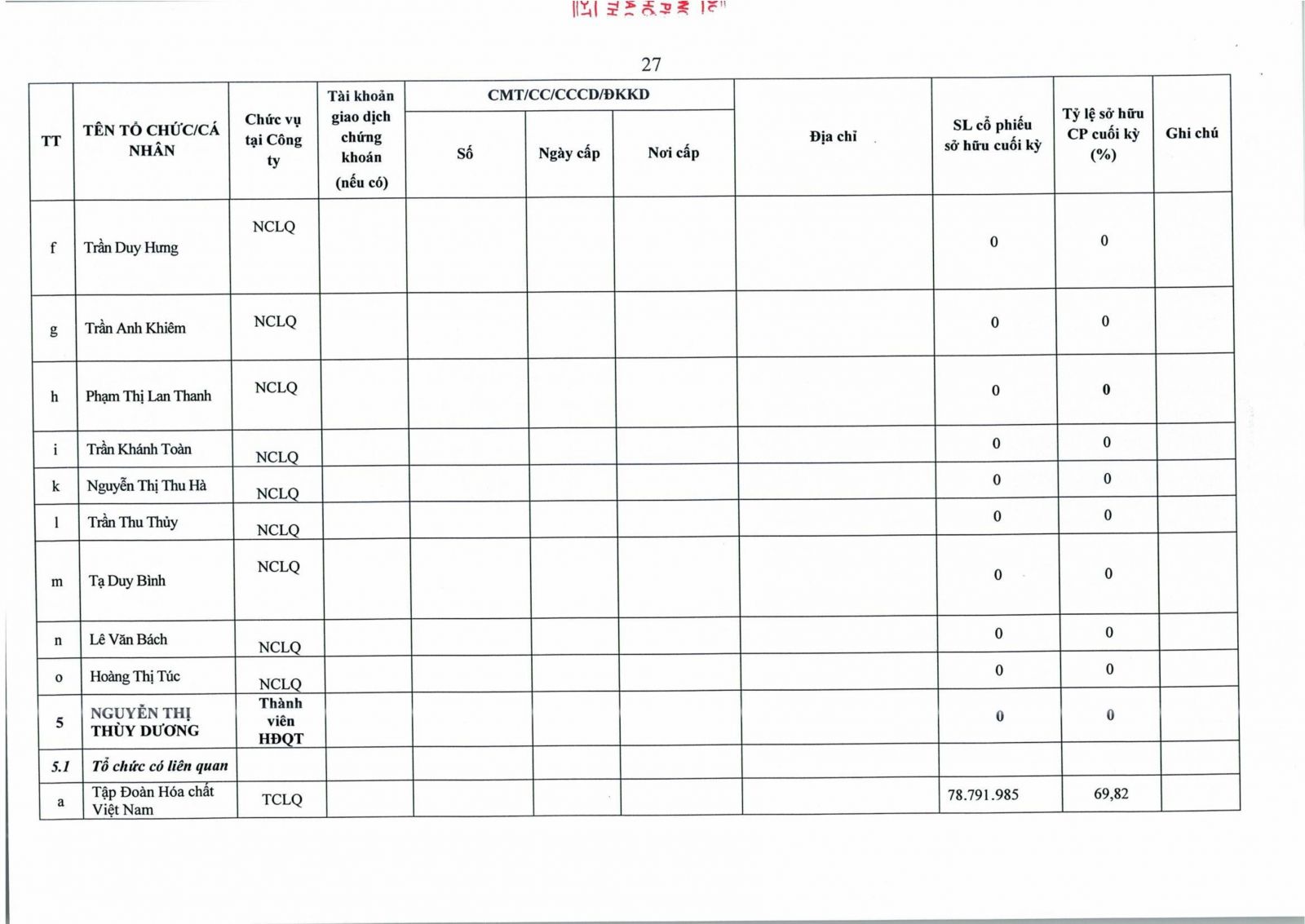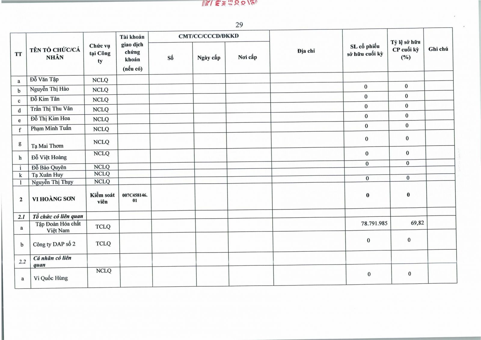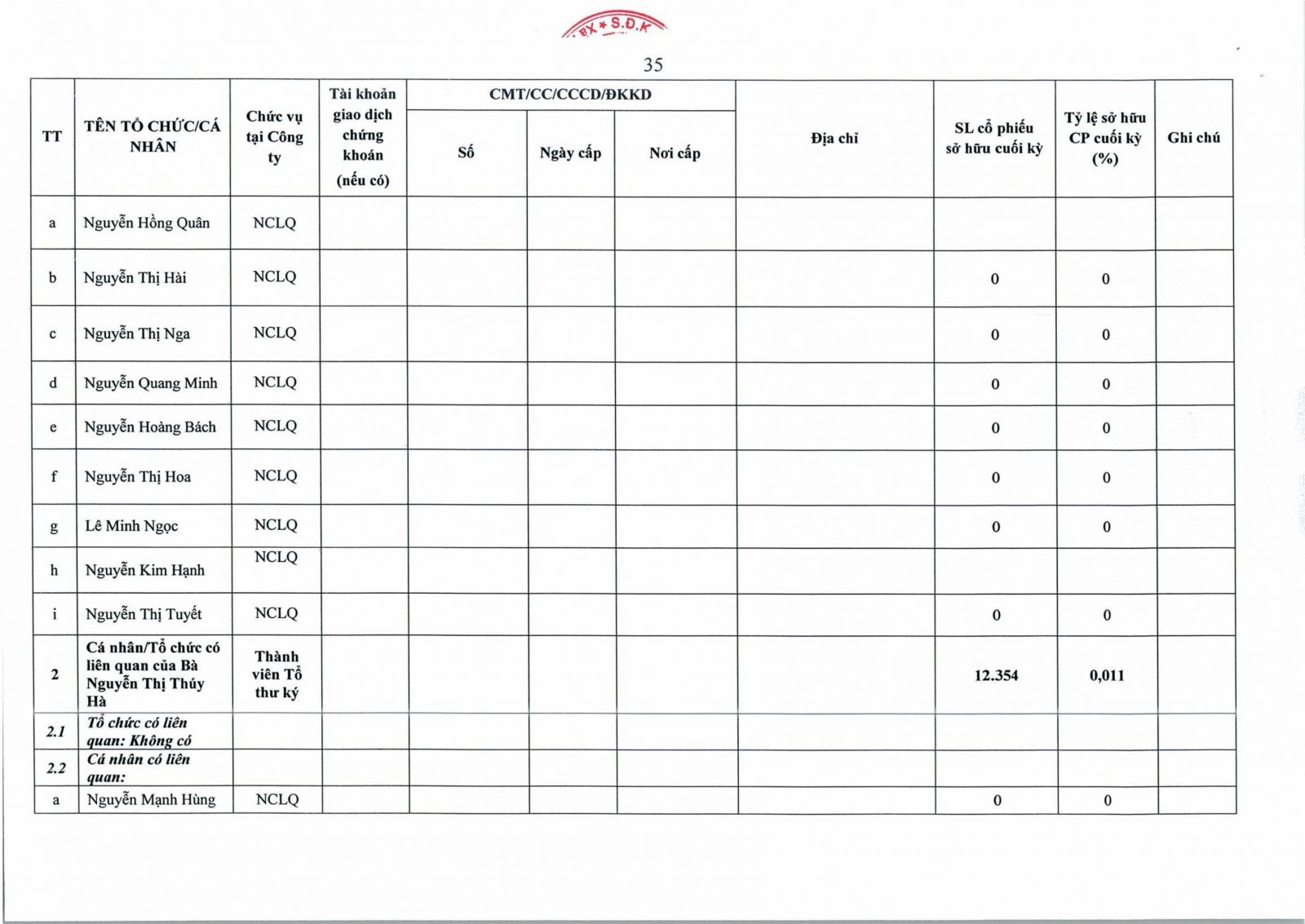 • Thông tin cổ đông