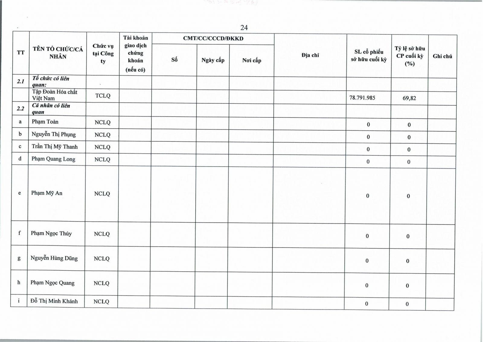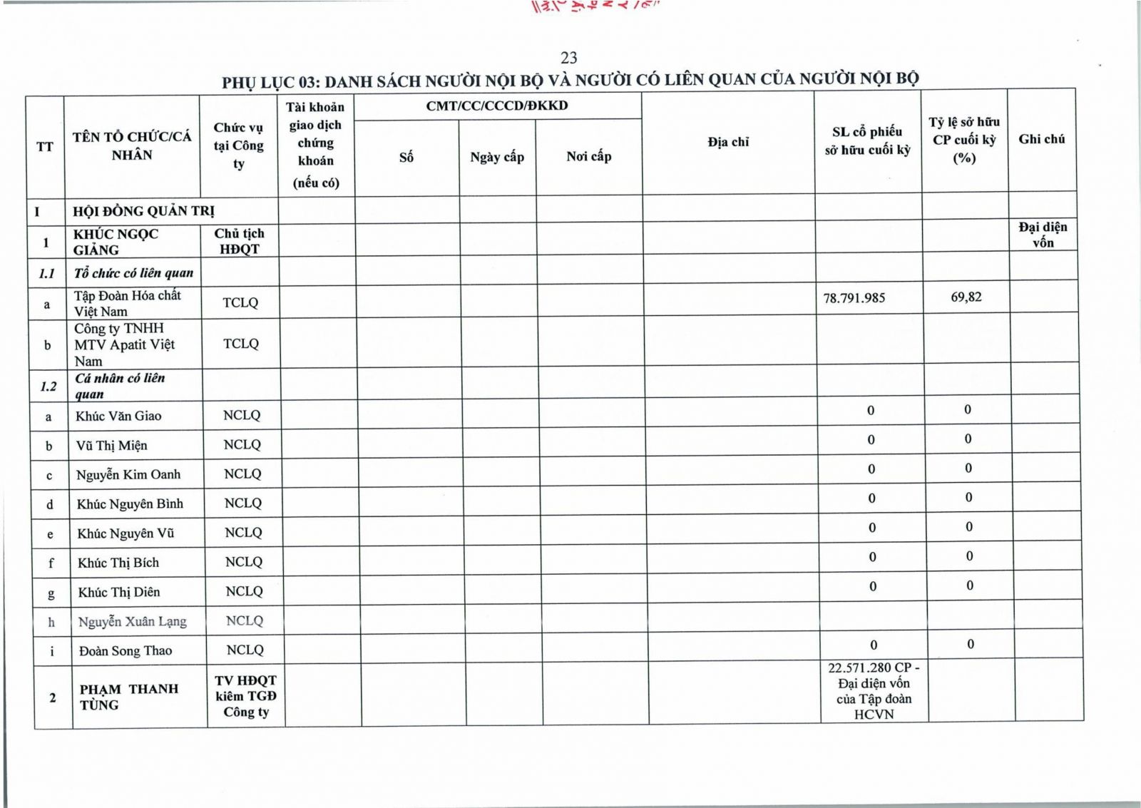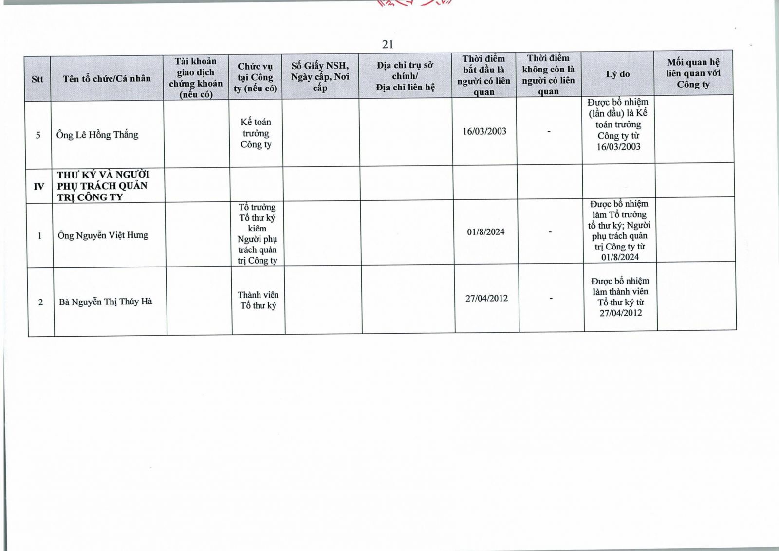 Công bố thông tin chấp thuận chủ trương giao dịch với người nội bộ, có liên quan