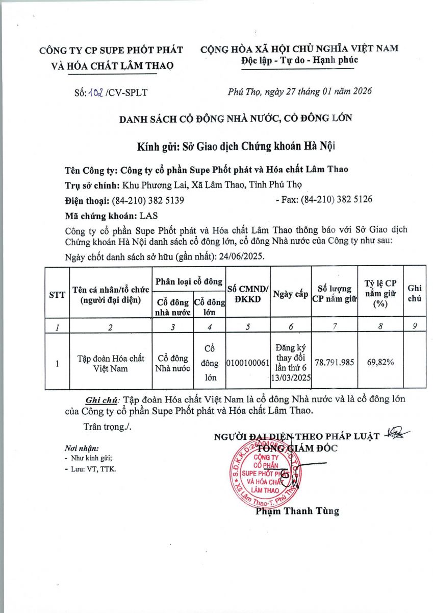 Bản tin điện tử (website) của Công ty CP Supe phốt phát và Hóa chất Lâm Thao